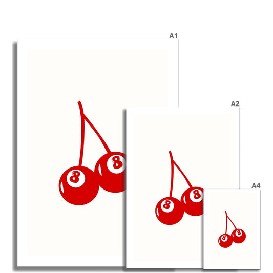 Lucky 8 Ball Cherries Poster Print Wall Art Red Cherry Food Colourful Cute Gift Inspirational Mantra Wall Art Poster