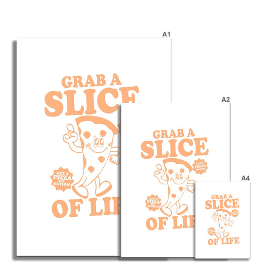 Grab a Slice of Life Pizza Wall Art Print Restaurant Food Vintage Cartoon Design Wall Art Poster