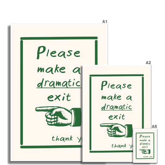 Please Make a Dramatic Exit (LEFT VERSION) Poster Print Wall Art Funny Cute Gift Inspirational Mantra Entrance Hallway Door Wall Art Poster