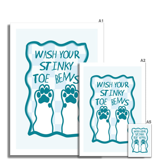 Wash Your Stinky Toe Beans Poster Print Wall Art Funny Cute Gift Inspirational Mantra Bathroom Cat Dog Wash Hands Paws Wall Art Poster