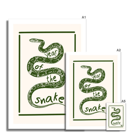 Year of the Snake Poster Print Wall Art Funny Cute Gift Inspirational Mantra Chinese Zodiac Wood Green New Year 2025 Wall Art Poster