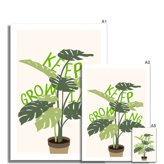 Keep Growing Poster Print Wall Art Plants Flowers Monstera Colourful Cute Gift Inspirational Mantra Wall Art Poster