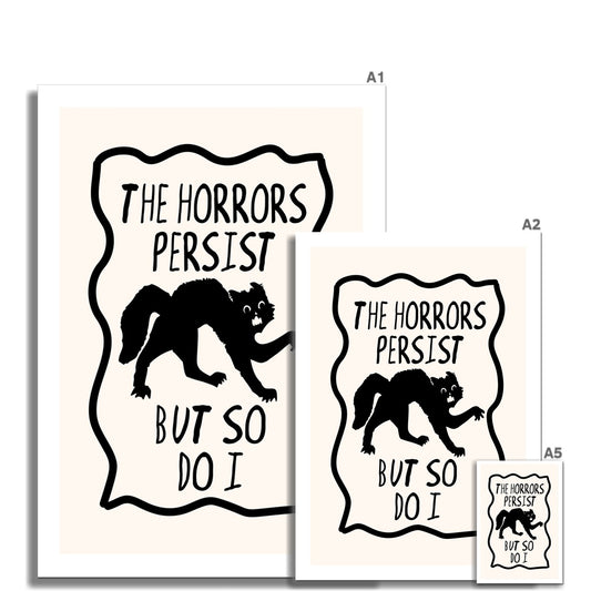 The Horrors Persist But So Do I Poster Print Wall Art Funny Scared Black Cat Cute Gift Inspirational Mantra Wall Art Poster