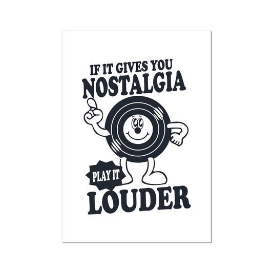 If It Gives You Nostalgia, Play It Louder Print Wall Art Retro Fun Mantra Vintage Cartoon Style Vinyl Music Wall Art Poster