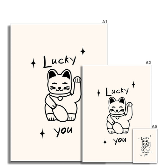 Lucky You Poster Print Home Wall Gift Graphic Mantra Decor Cute Vintage Retro Art Pink Japanese Waving Cat Wall Art Poster