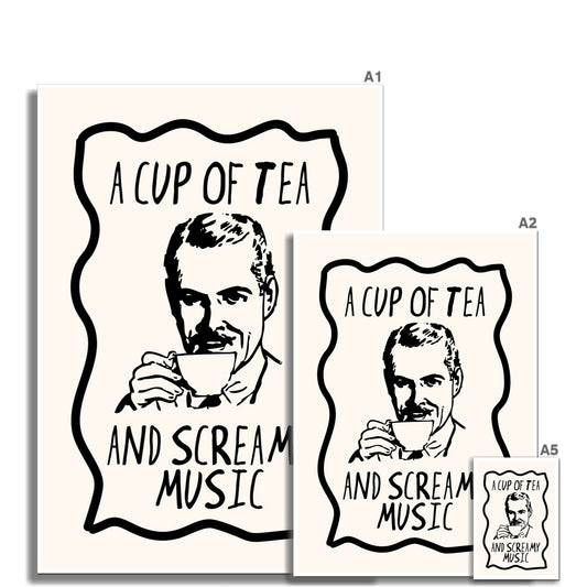 A Cup Of Tea And Screamy Music Metal Home Wall Art Gift Graphic Decor Cute Vintage Style Cute Classic Art Rock Goth Wall Art Poster