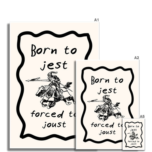 Born To Jest Forced To Joust Poster Print Couple Home Wall Gift Graphic Decor Cute Art Funny Silly Inspo Bold Vintage Type Style Meme Knight Wall Art Poster