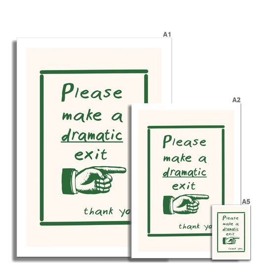 Please Make a Dramatic Exit (LEFT VERSION) Poster Print Wall Art Funny Cute Gift Inspirational Mantra Entrance Hallway Door Wall Art Poster