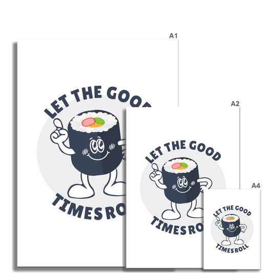 Let The Good Times Roll Sushi Japanese Retro Vintage Cartoon Print Wall Art Wall Art Poster