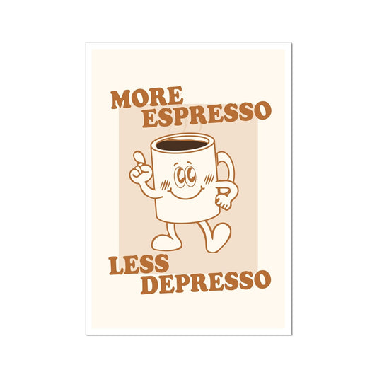 More Espresso Less Depresso - Vintage Cartoon Collection - Wall Art Print Office Home Guest House Minimalist Pastel Wall Art Poster