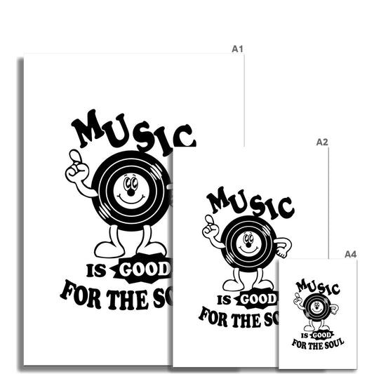 Music Is Good For The Soul Wall Art Print Vintage Style Cartoon Vinyl Record Wall Art Poster