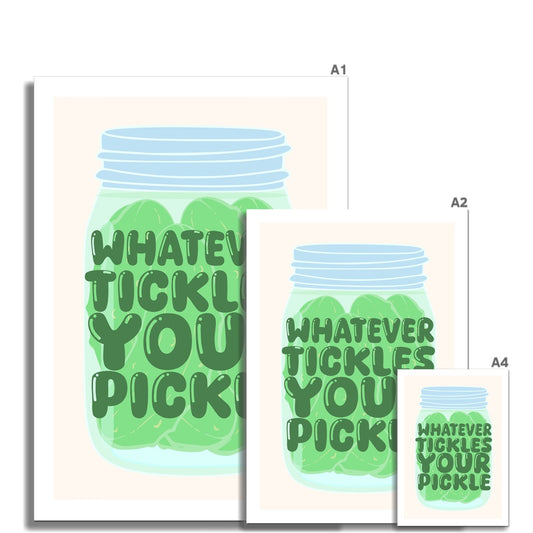 Whatever Tickles Your Pickle Poster Print Wall Art Colourful Cute Food Gift Inspirational Mantra Gherkins Fan Wall Art Poster