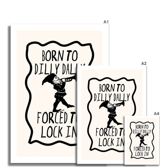 Born to Dilly Dally, Forced To Lock In Poster Print Wall Art Funny Cute Gift Inspirational Mantra Office Work Hard Gnome Wall Art Poster
