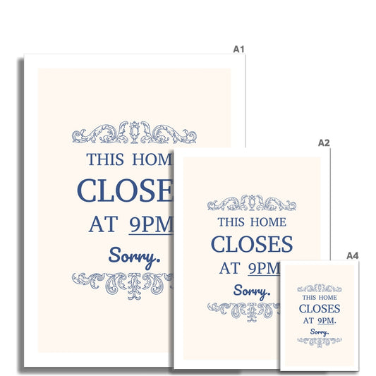 This Home Closes at 9PM. Sorry. Poster Print Wall Art Colourful Cute Gift Inspirational Mantra Love Couples Please Leave Wall Art Poster