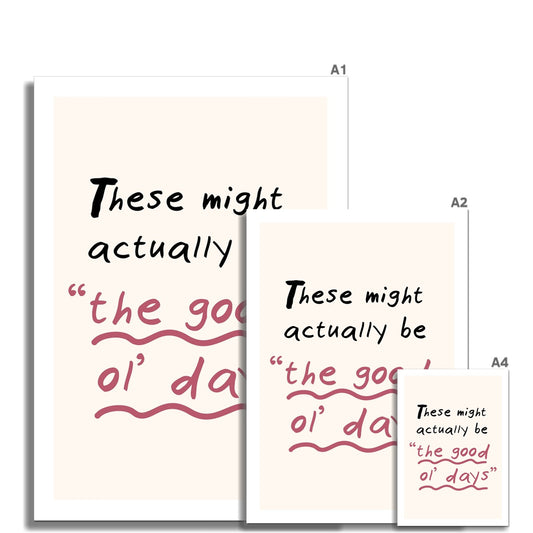 These Might Actually Be "The Good Old Days" Poster Print Wall Art Funny Cute Gift Inspirational Mantra Positive Vibes Wall Art Poster
