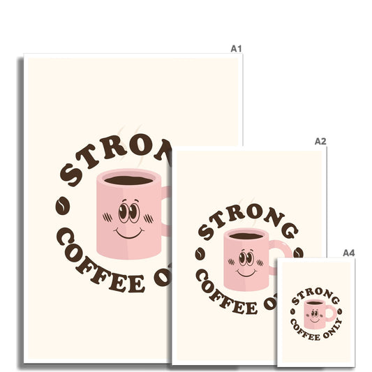 Strong Coffee Only - Vintage Cartoon Collection - Wall Art Print Office Home Guest House Minimalist Pastel Wall Art Poster