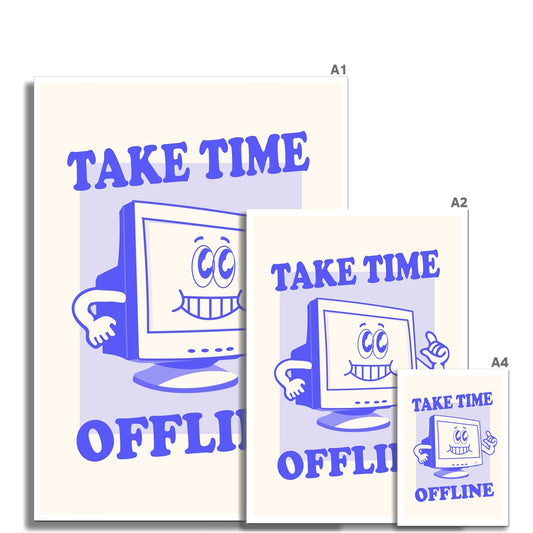 Take Time Offline - Vintage Cartoon Collection - Wall Art Poster Print Retro Mantra Computer Office Home Remote Work Wall Art Poster