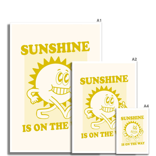 Sunshine Is On The Way - Vintage Cartoon Collection - Wall Art Poster Print Retro Mantra Positive Vibes Office Home Remote Work Wall Art Poster