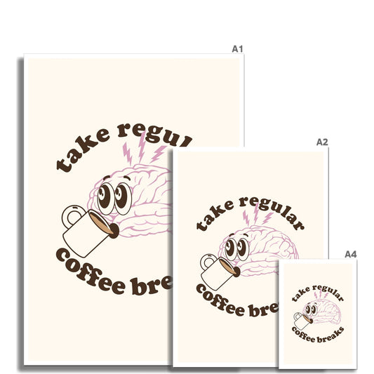 Take Regular Coffee Breaks - Vintage Cartoon Collection - Wall Art Print Office Home Guest House Minimalist Pastel Wall Art Poster