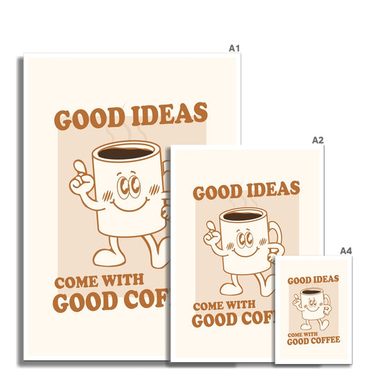 Good Ideas Come With Good Coffee - Vintage Cartoon Collection - Wall Art Print Office Home Guest House Minimalist Pastel Espresso Latte Wall Art Poster