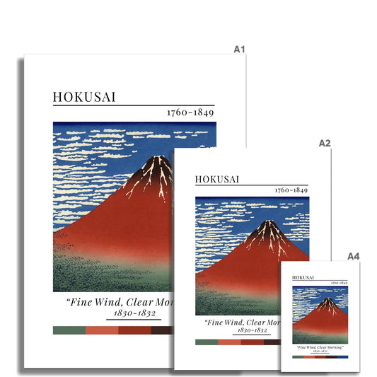 Hokusai Mt Fuji Fine Wind Clear Morning - Classic Art Collection - Wall Art Colour Palette Dorm Bedroom Living Room Print Vintage Wall Art Poster
