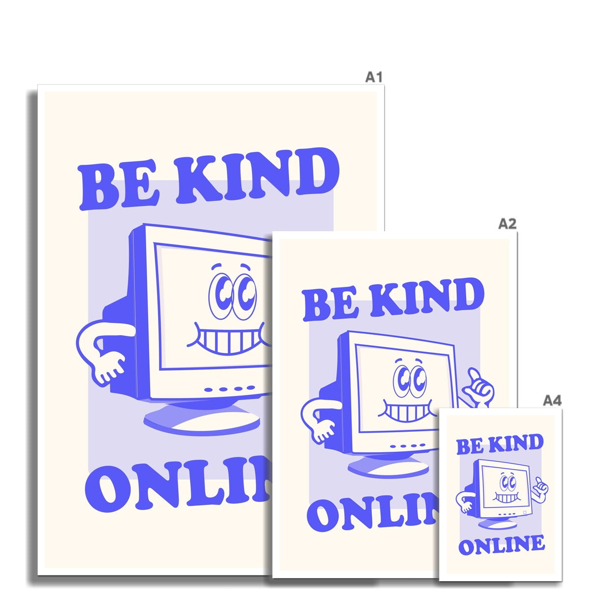 Be Kind Online - Vintage Cartoon Collection - Wall Art Poster Print Retro Mantra Computer Office Home Remote Work Wall Art Poster