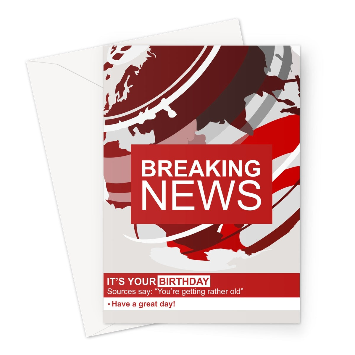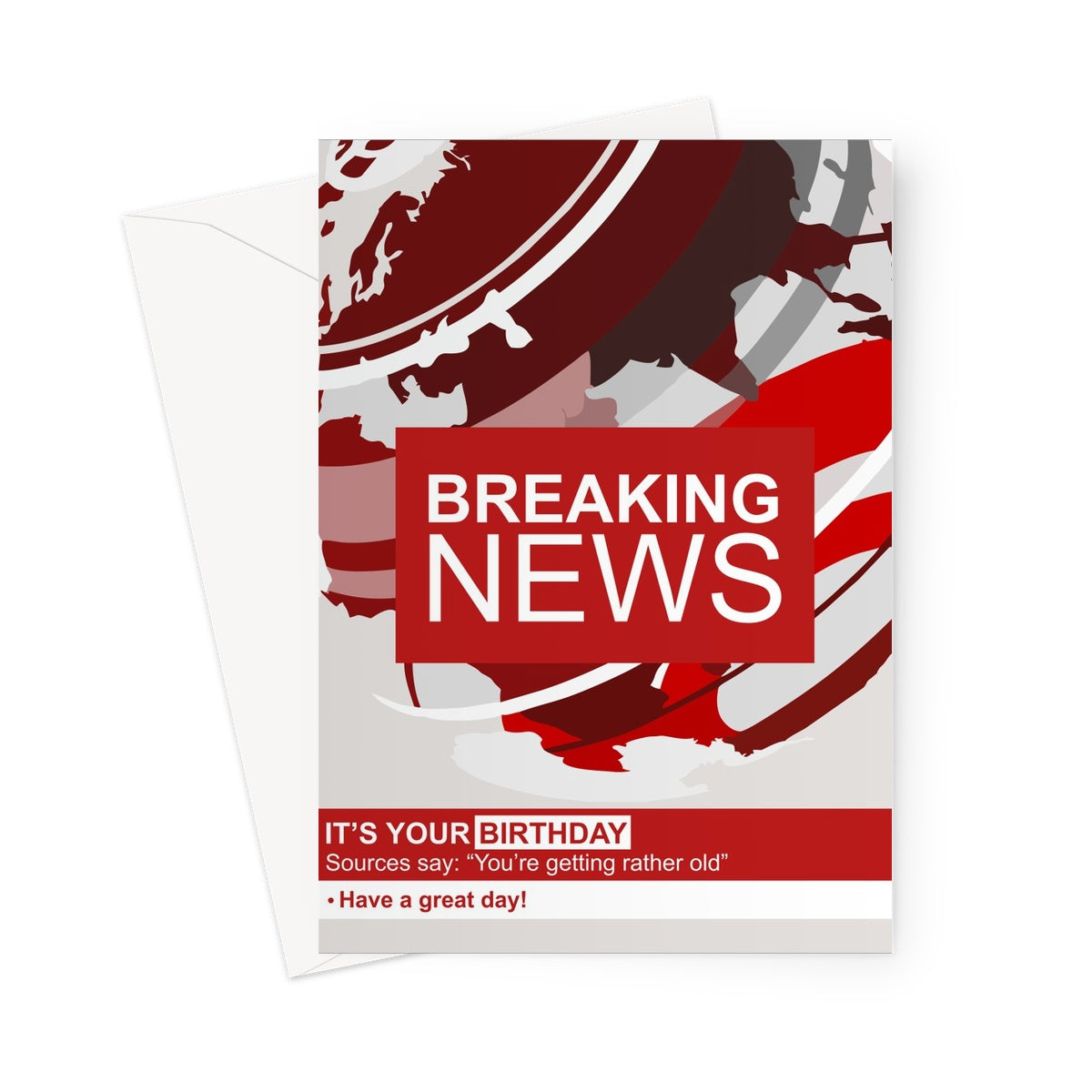 Breaking News It's Your Birthday You're Getting Rather Old Have a Great Day Funny BBC Parody Love Fan TV Mum Dad Retro Classic Greeting Card