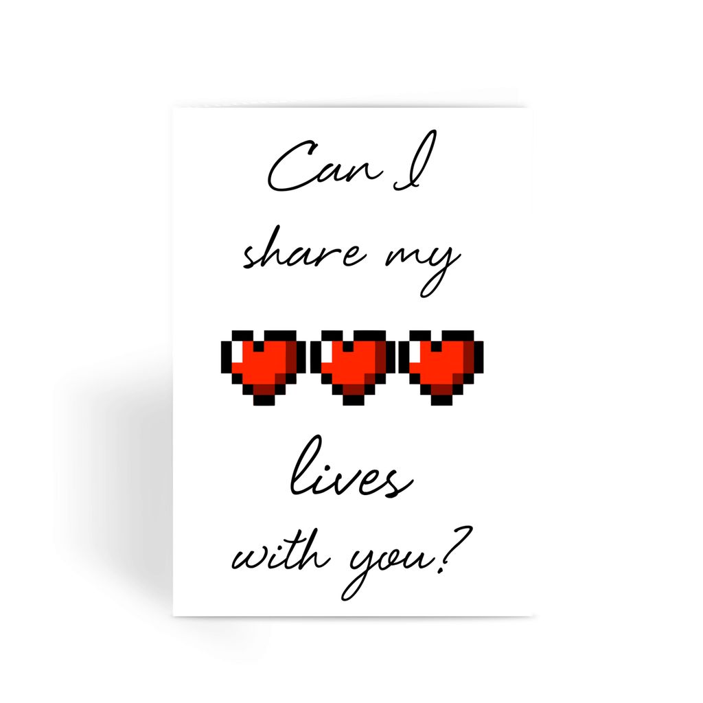 Gamer Greetings Card - 'Can I Share My Lives With You?' Valentine Card