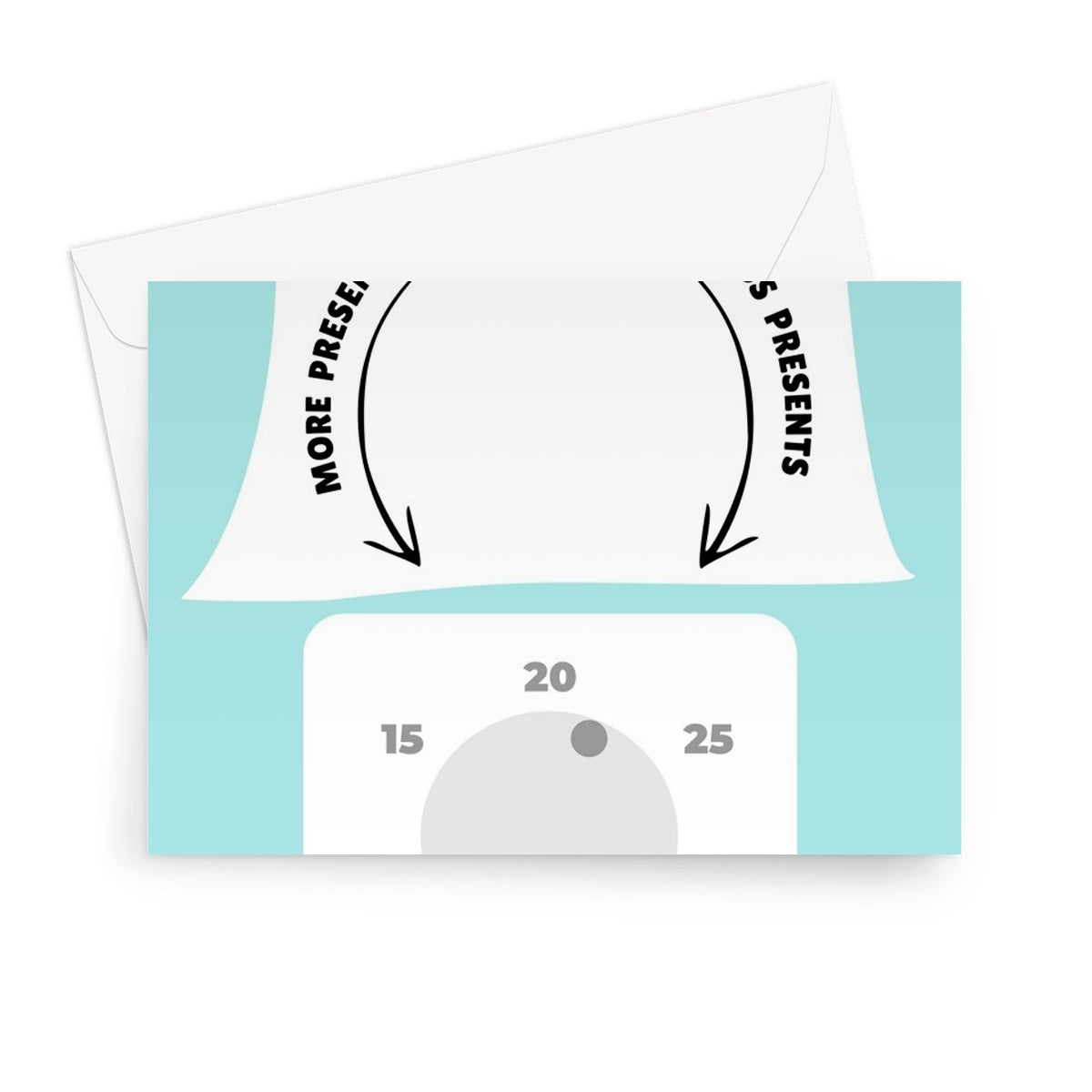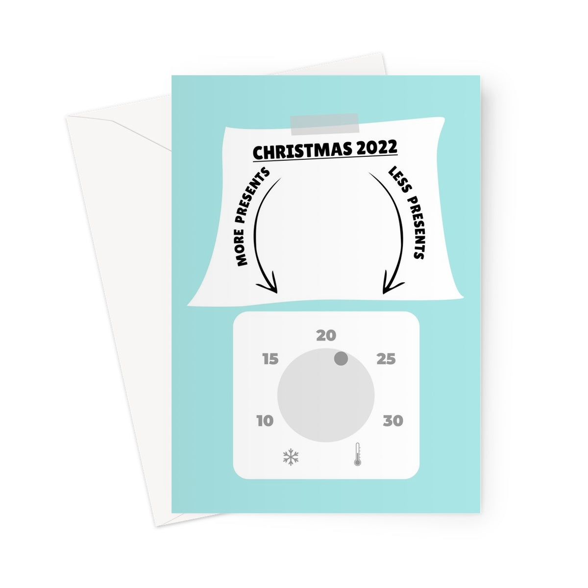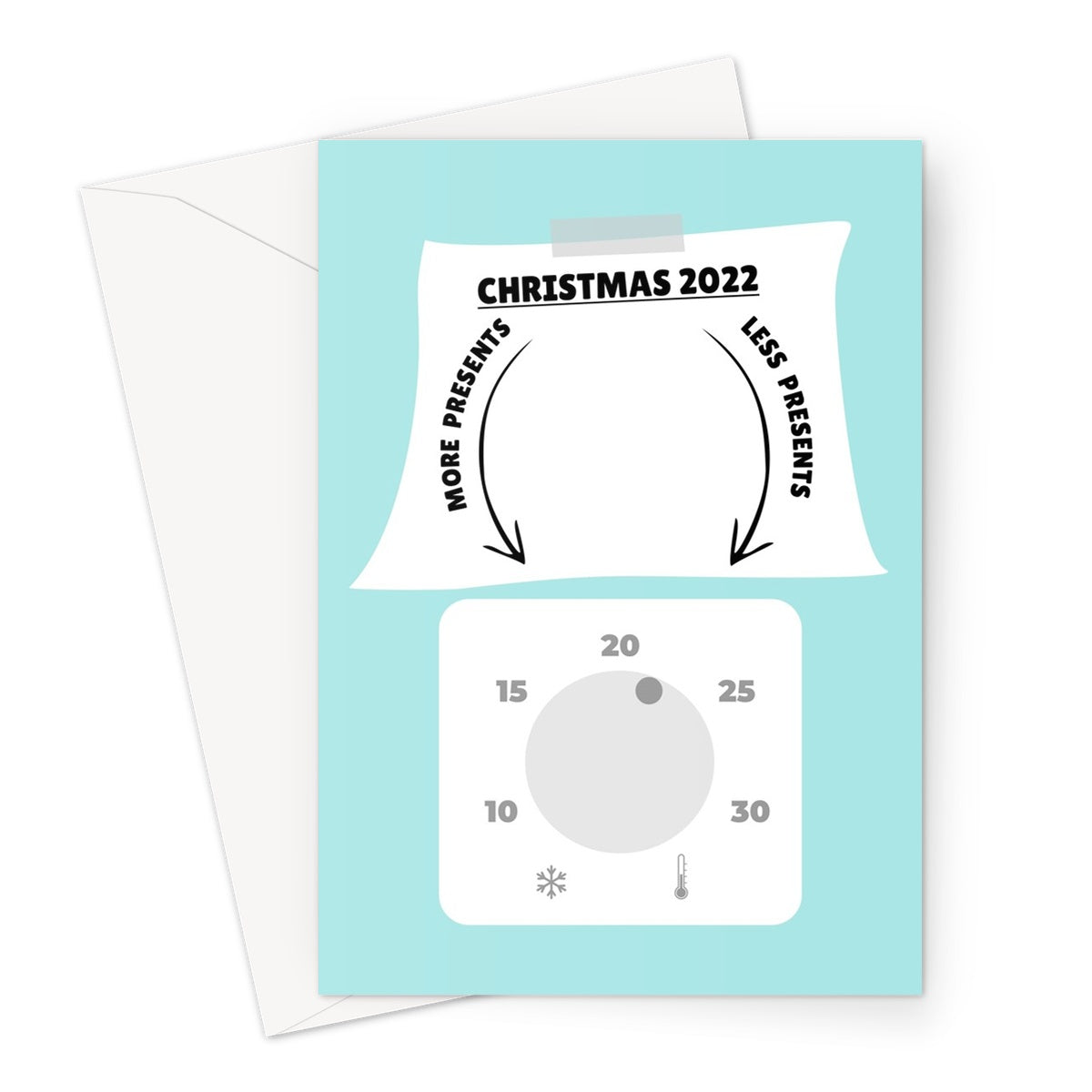 Christmas 2022 More Presents Less Presents Thermostat Funny Heating Cost of Living Dad Joke Greeting Card