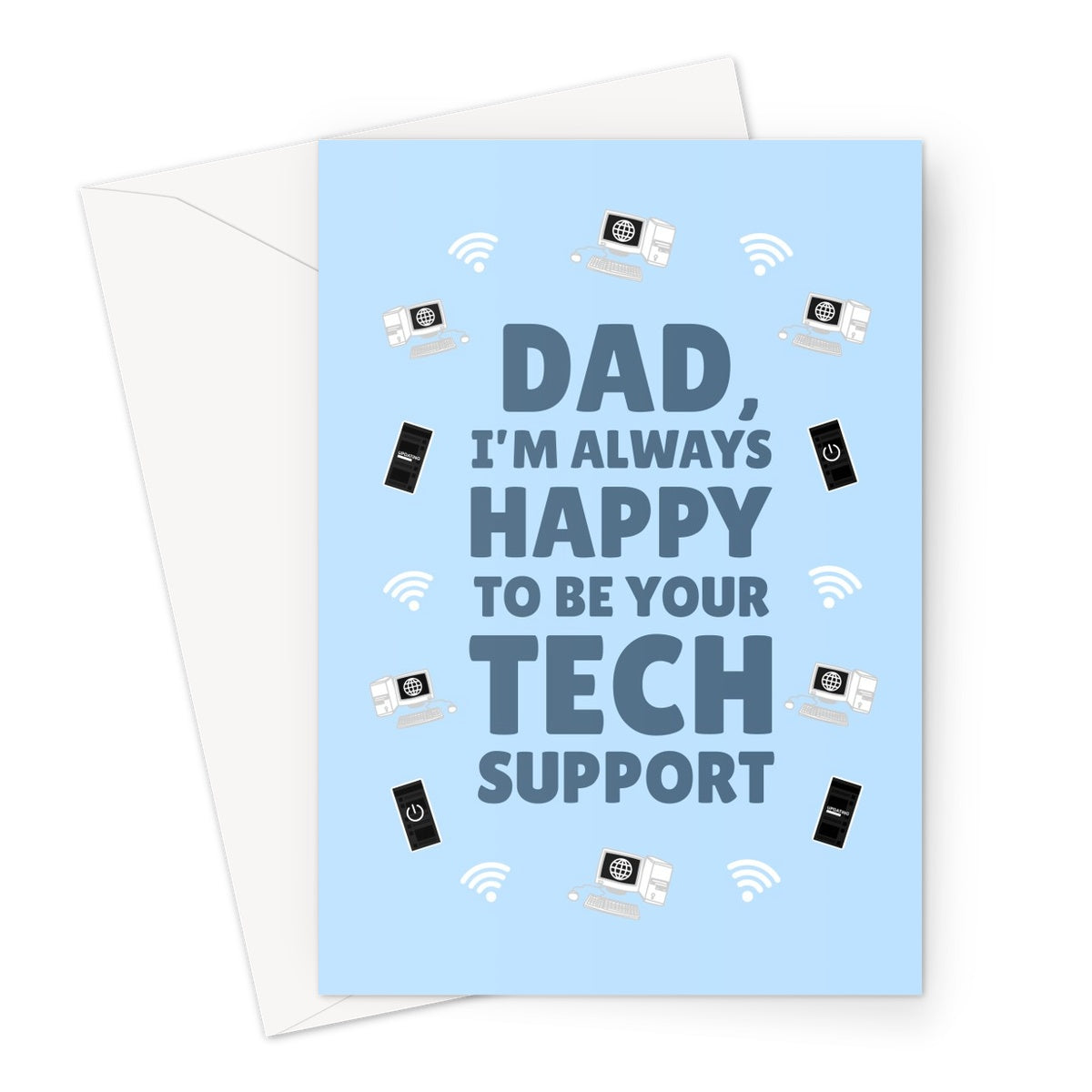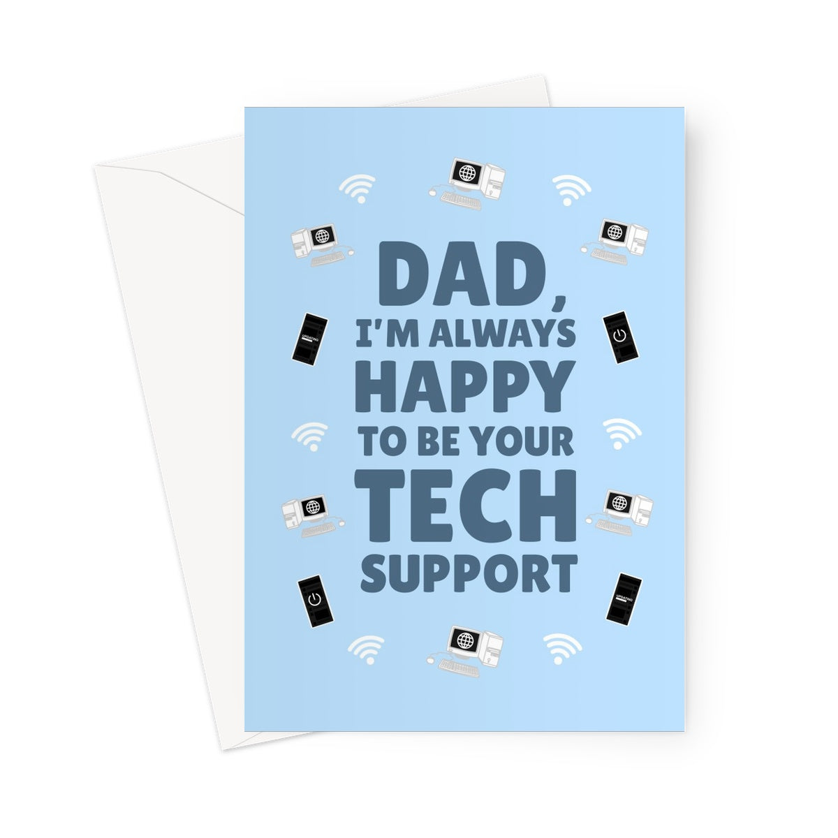 Dad I'm Always Happy To Be Your Tech Support Funny Father's Day Birthday Gadget Nerd Help Wifi Computer Phone On and Off Old Greeting Card