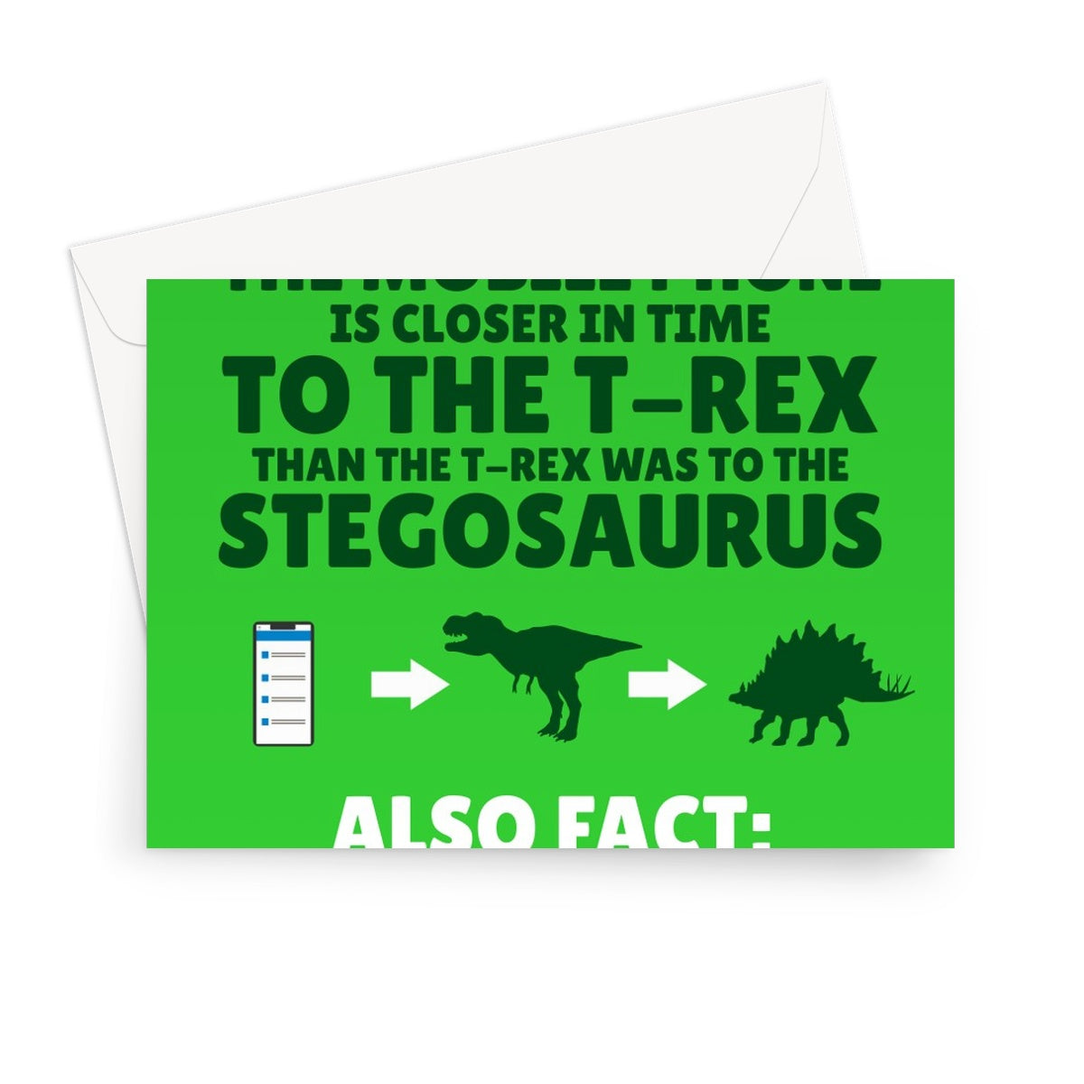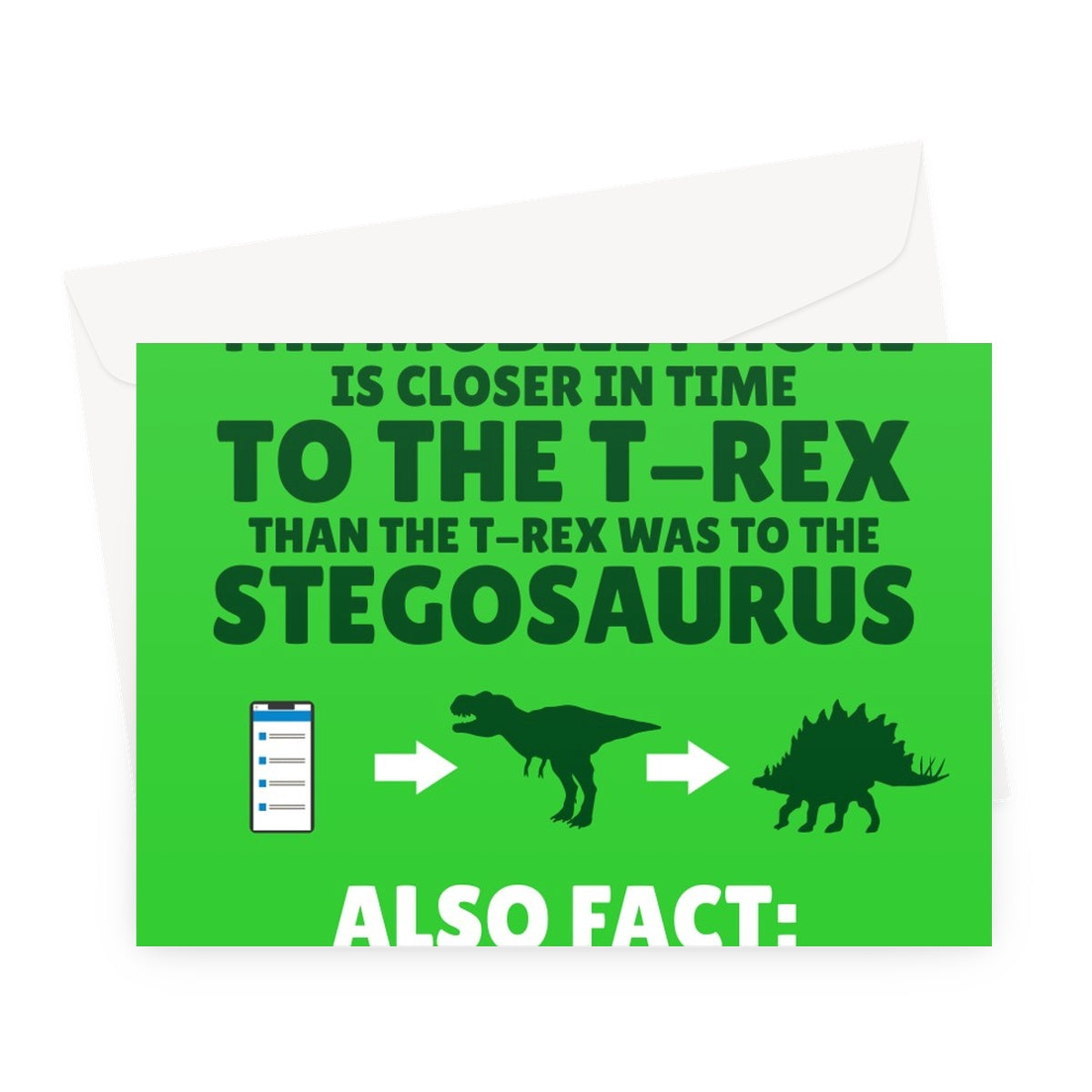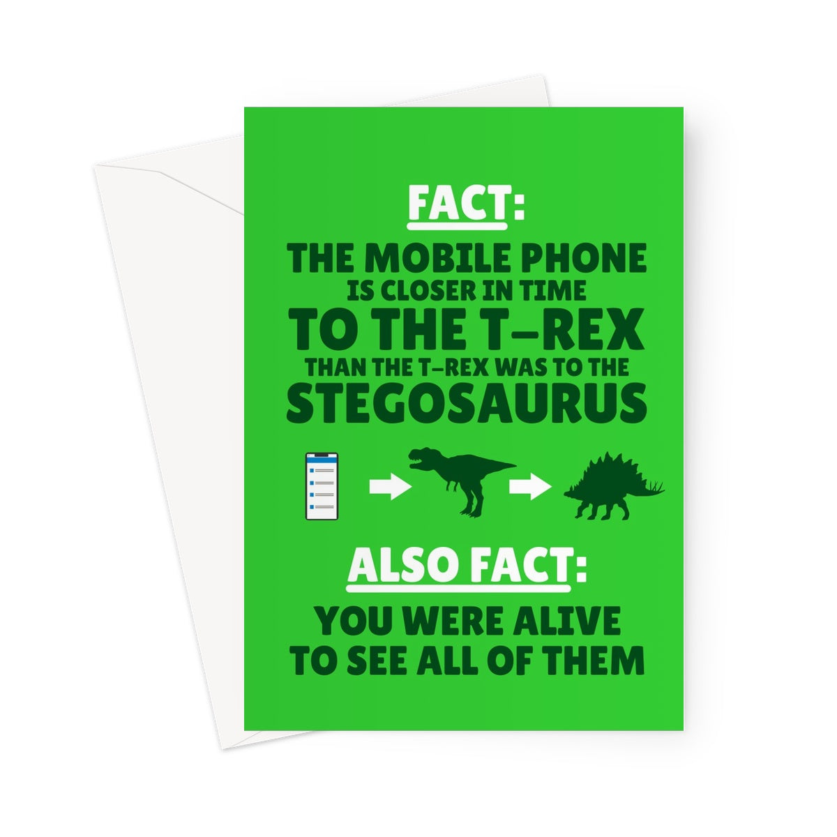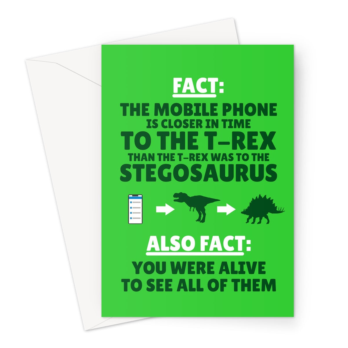 Fact: The Mobile is Closer in Time To The T-rex Than The T-rex Was To The Stegosaurus. Also Fact: You Were Alive To See Them All Funny Birthday Dad Father's Day Dinosaurs Greeting Card