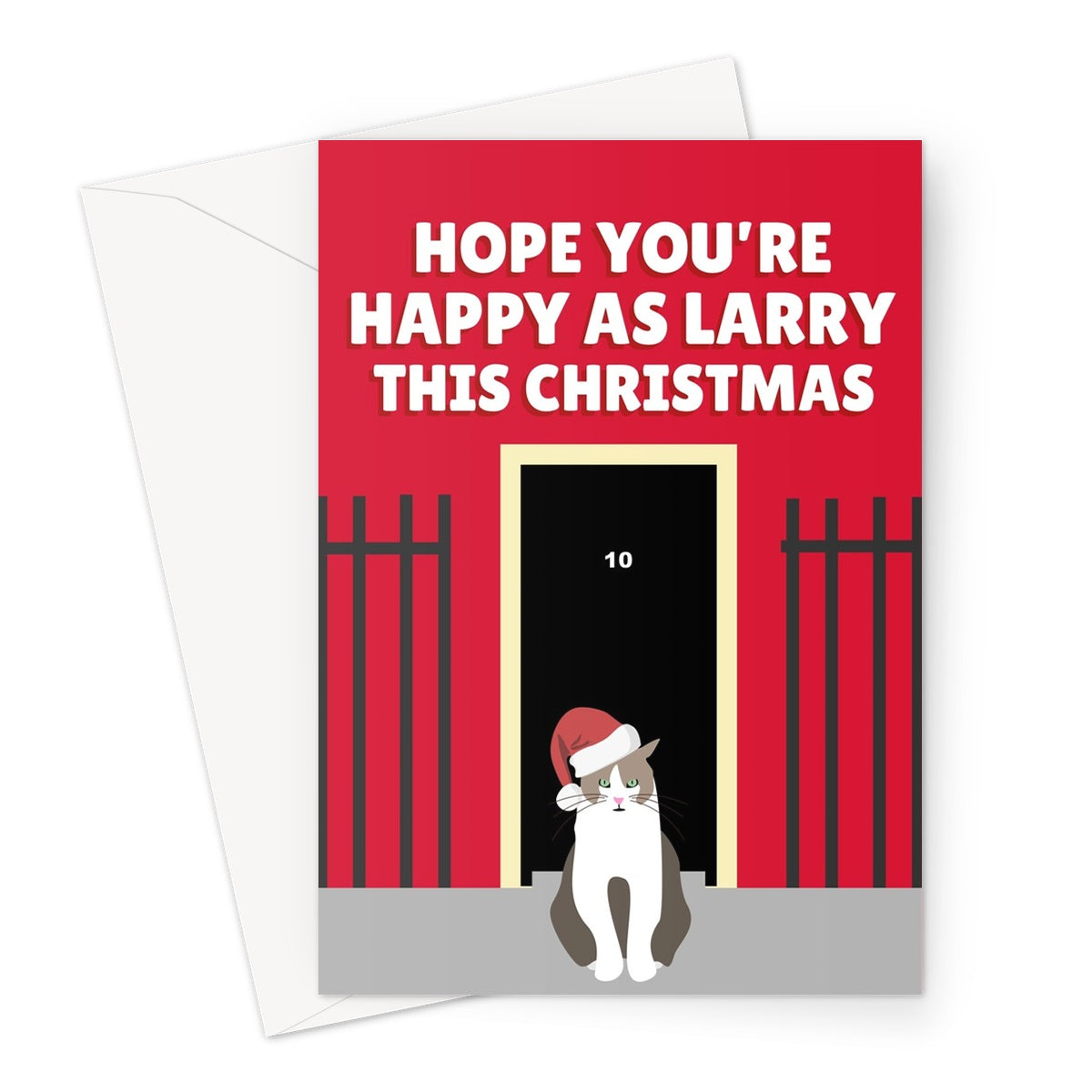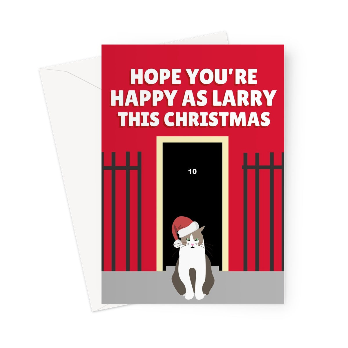 Hope You're Happy as Larry This Christmas Number 10 Downing Street Politics Cat Celebrity Rishi Sunak Liz Truss Greeting Card