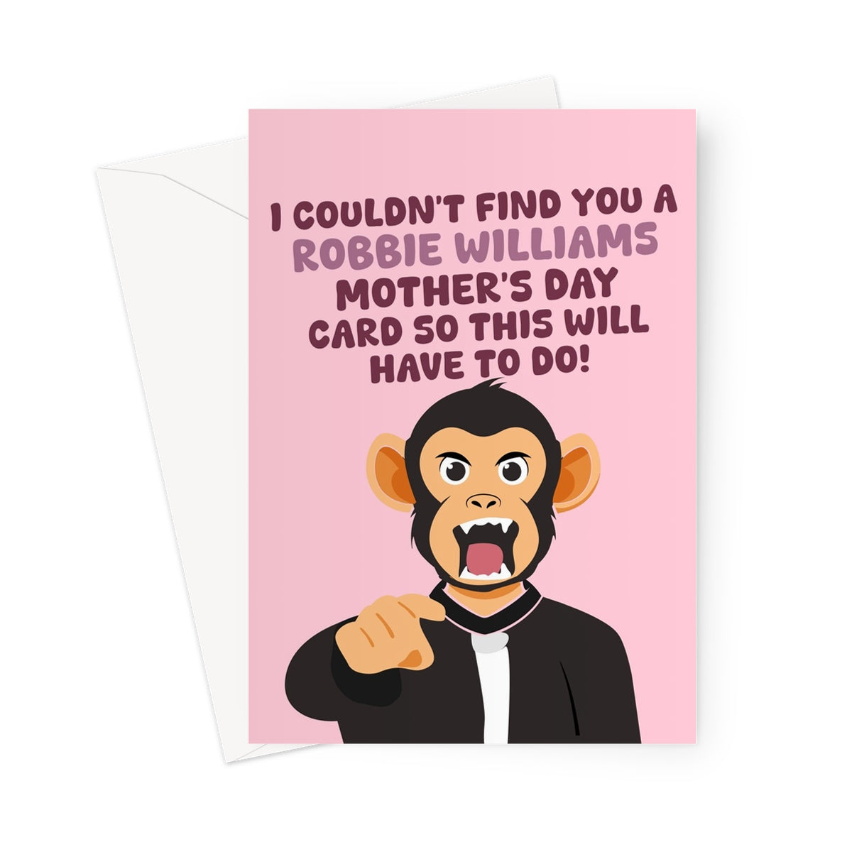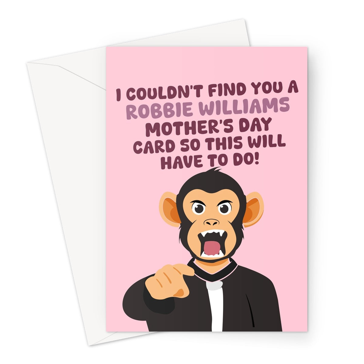 I Couldn't Find You A Robbie Williams Mother's Day Card So This Will Have To Do Funny Film Fan Mum Ape Monkey Greeting Card