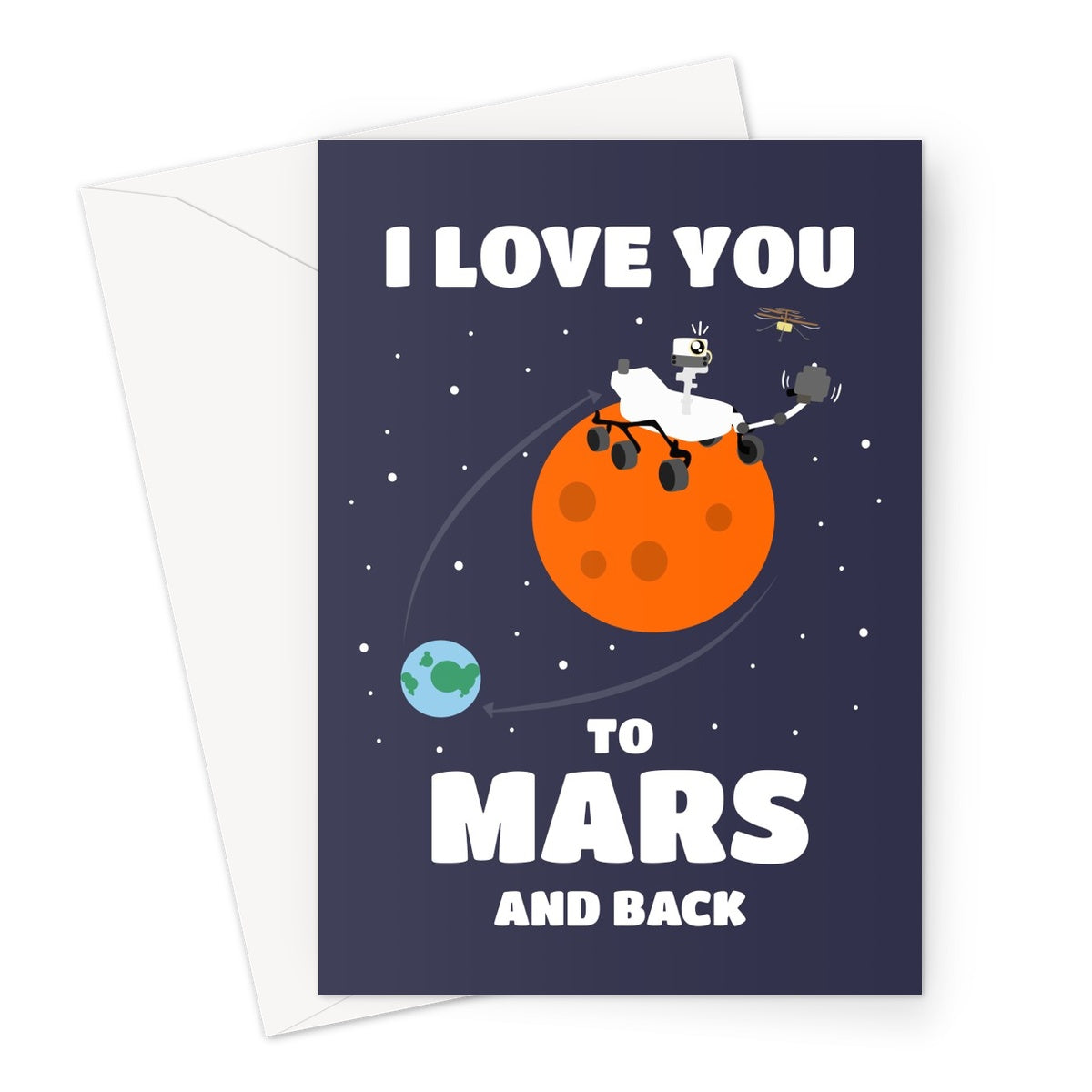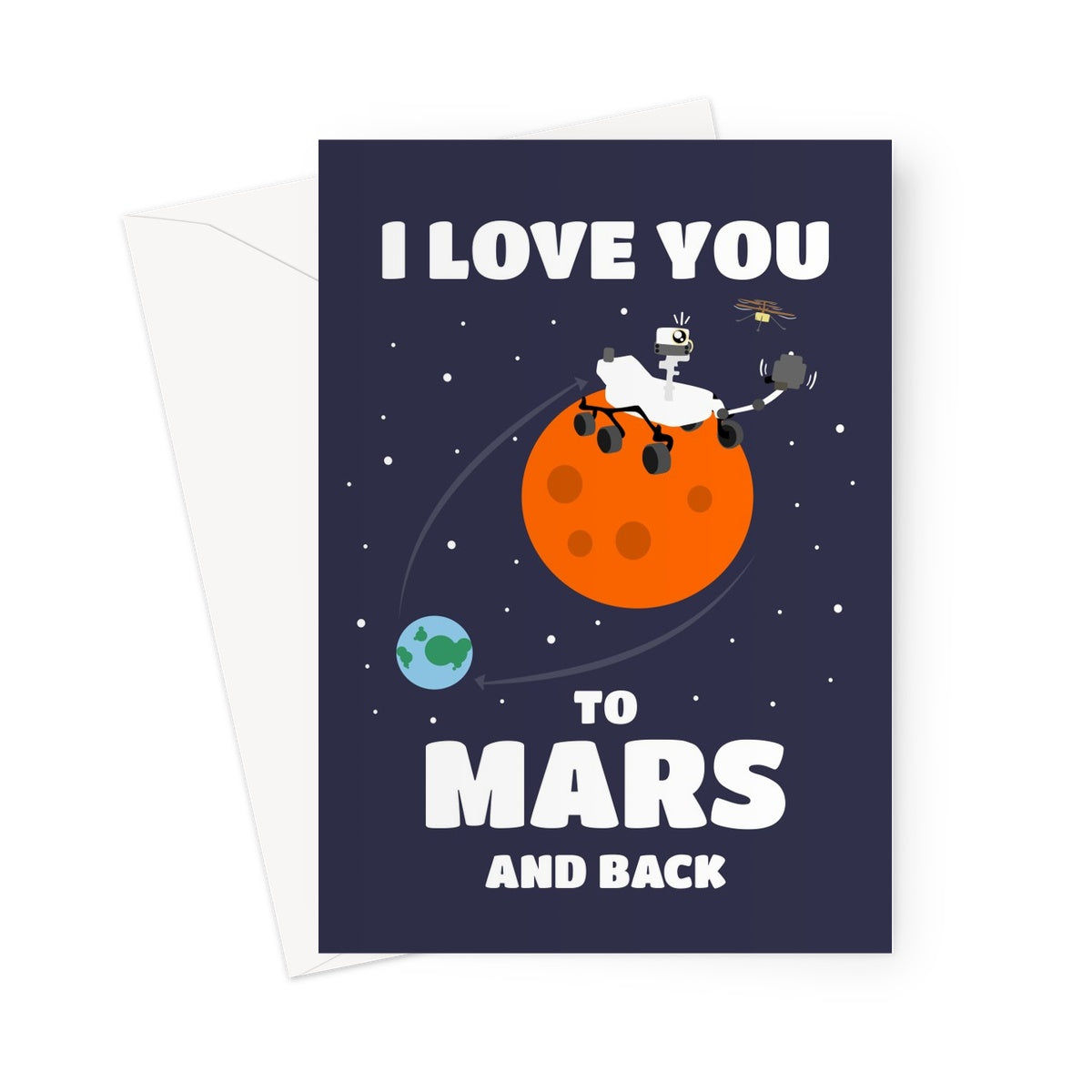 I Love You to Mars and Back Space Cute Rover Nasa Funny Mother's Father's Day Birthday Anniversary Earth Nerd Moon Stars Greeting Card
