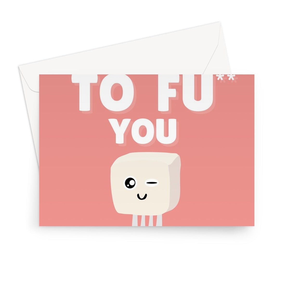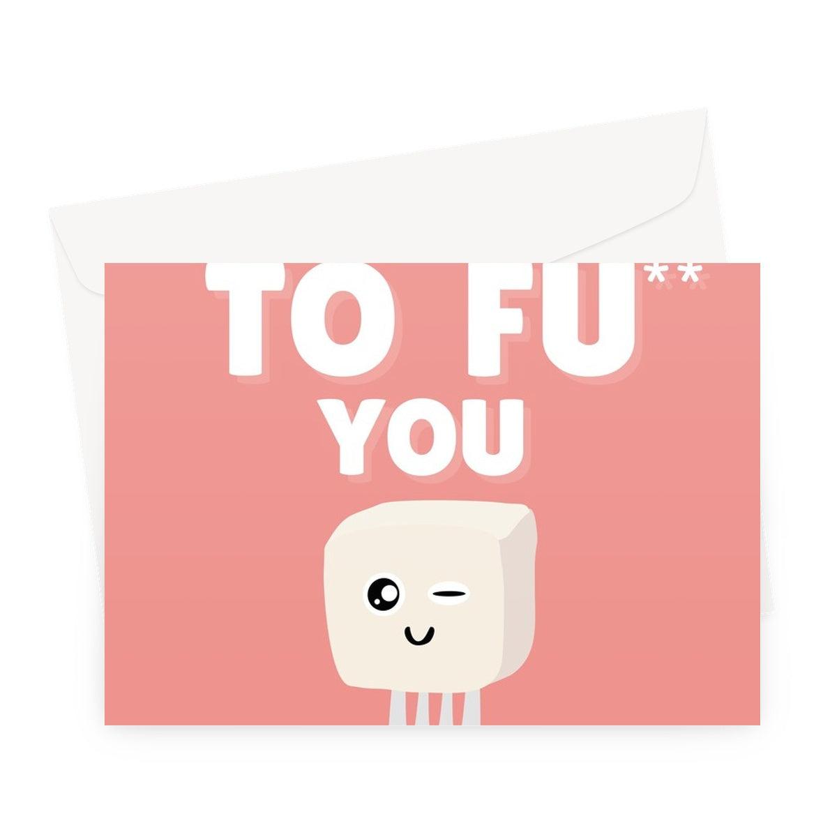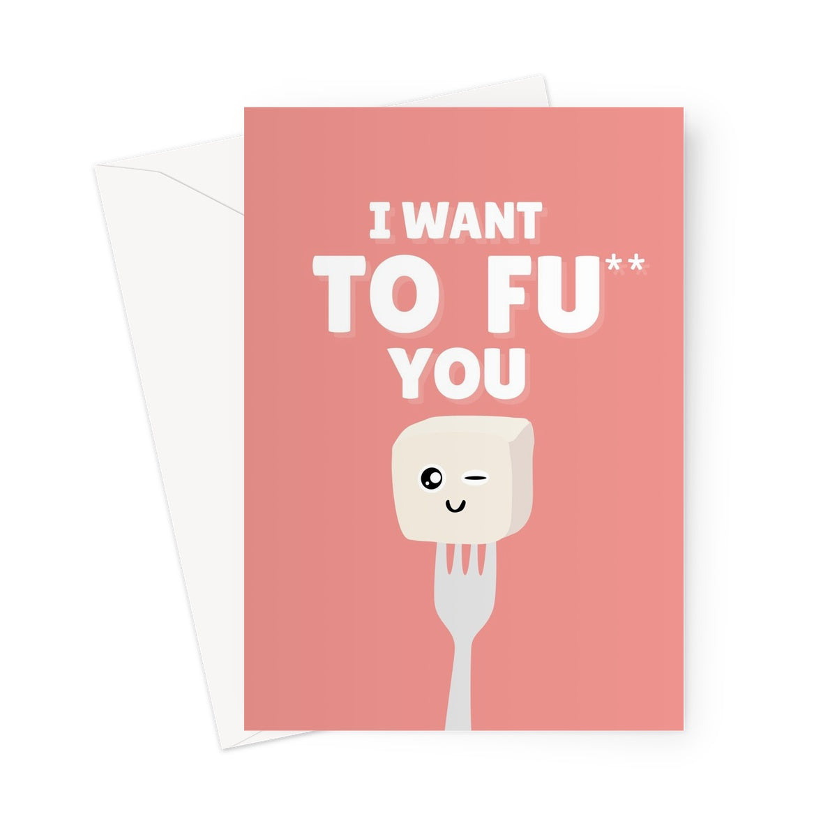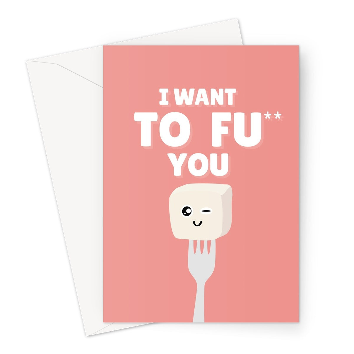 I Want TO FU You Funny Rude Cheeky Love Fan Vegan Tofu Valentine's Day Anniversary Birthday Kawaii Food Greeting Card