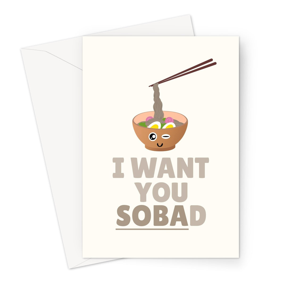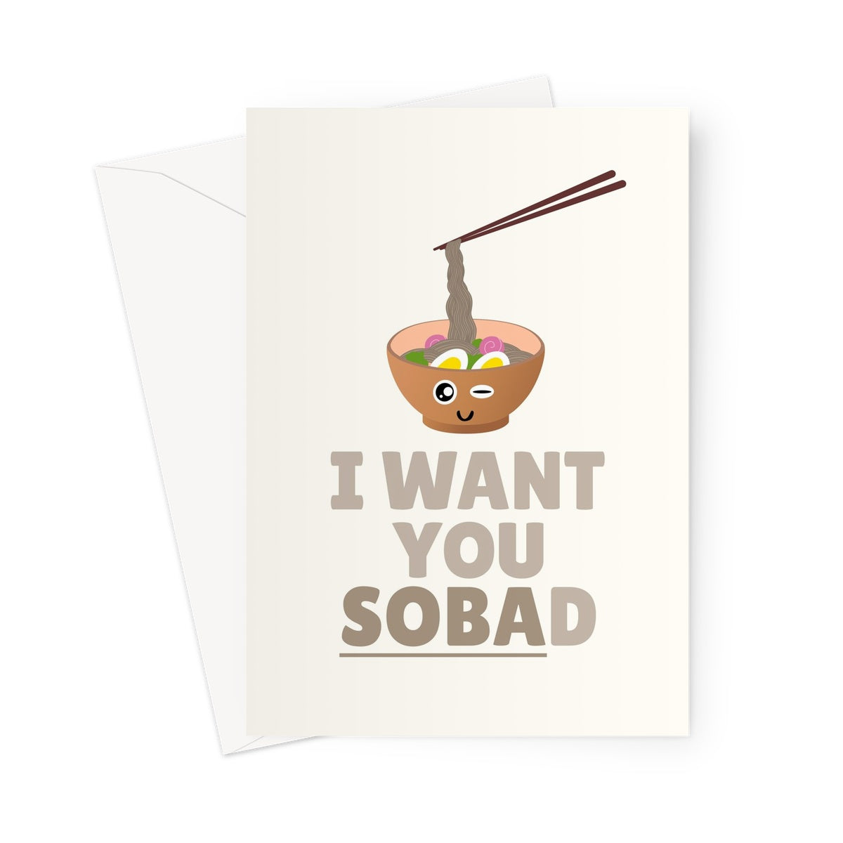 I Want You SOBAd Funny Food Pun Fan Birthday Valentine's Day Anniversary Soba Noodles Greeting Card