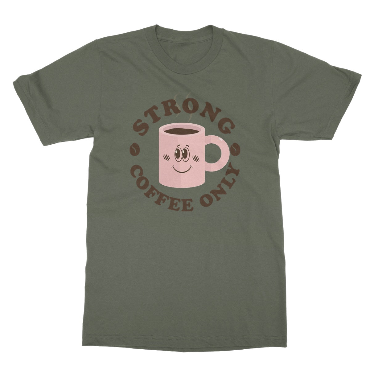 Strong Coffee Only Graphic Print Vintage Retro Look Caffeine Cafe Espresso Happy Softstyle T-Shirt