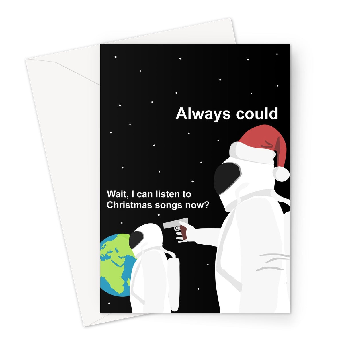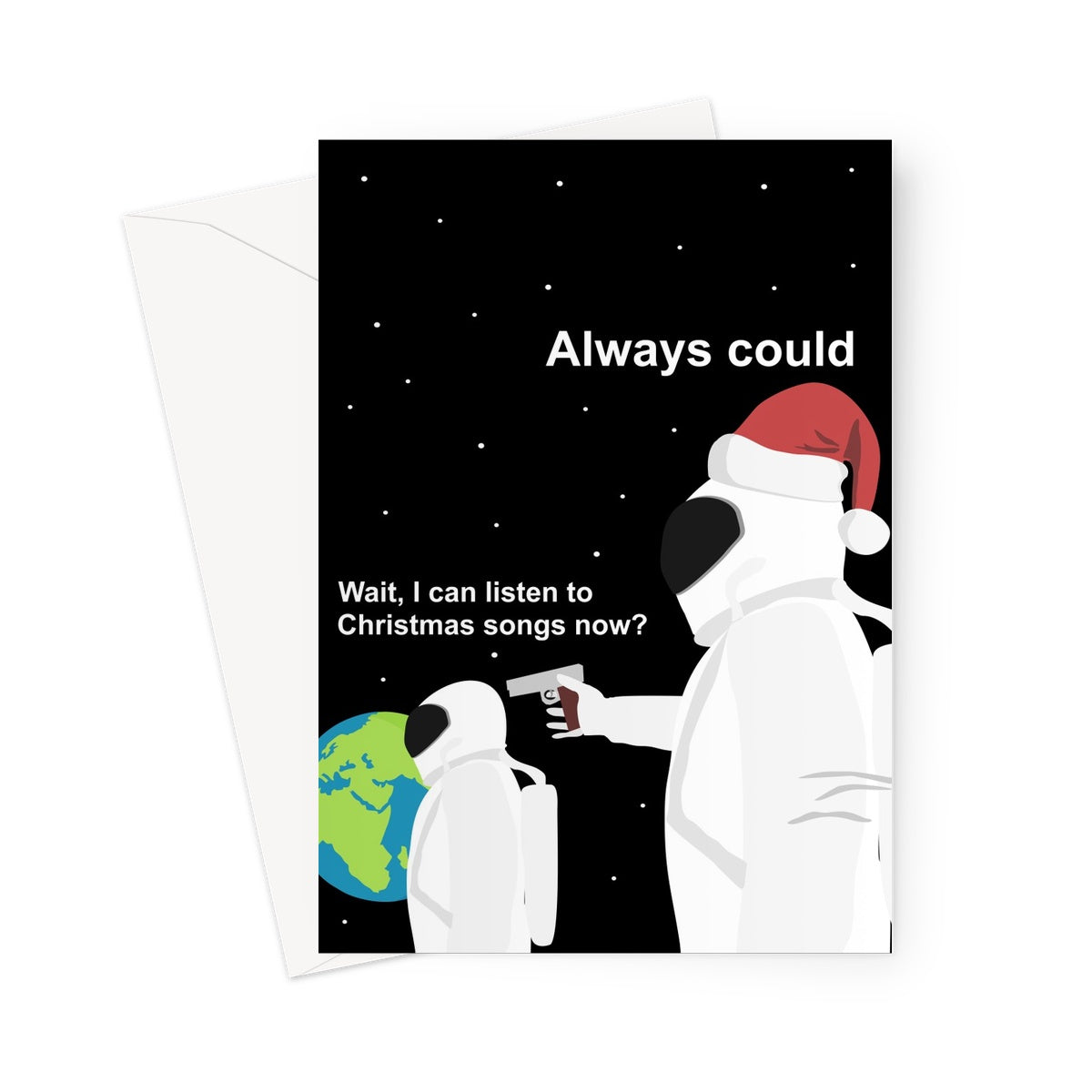 Wait I Can Listen to Christmas Songs Now? Always Could Funny Xmas Meme Fan Social Media Ohio Spacemen Astronaut Always has been Greeting Card